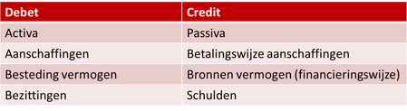 Beschrijving: Een balanspost aan de Debetkant wordt gedebiteerd als deze verhoogd en gecrediteerd als deze afneemt. Aan de Creditzijde van de balans is dit precies andersom.